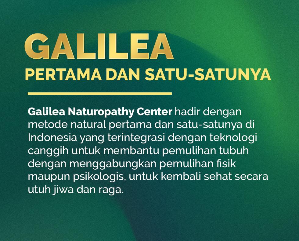 Dengan pemulihan yang mengutamakan penggunaan metode alami. Galilea Naturopathy Center menggunakan Naturopathic Medicine yang diformulasikan khusus melalui bioteknologi canggih, sehingga proses pemulihan pasien menjadi lebih optimal.